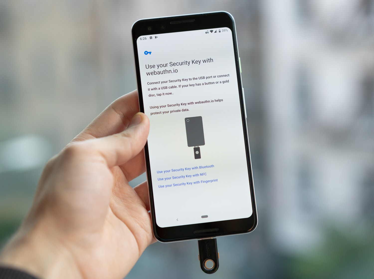 12 And if your computer doesn't have internal biometrics you can use for this purpose, you don't have many options. There aren't really any good CTAP2 devices on the market yet that include fingerprint readers. Update (Nov 2019): Yubico has announced that they are working on YubiKey Bio, the first biometric YubiKey that integrates a fingerprint reader for multi-factor auth purposes and does not require any batteries or custom drivers. This makes it ideal for enhancing user verification with biometrics (you can do old PIN-based too) when using passwordless auth. Unfortunately, it seems like this first device is only USB-A, not USB-C.