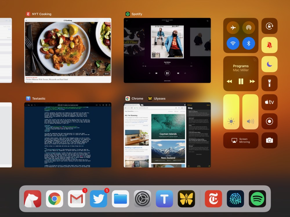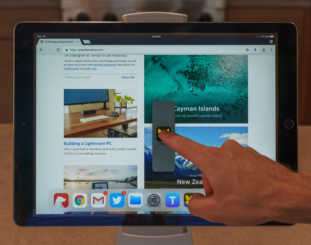 I start most mornings with my iPad Pro on my kitchen counter where I check Twitter, Apple News, NYTimes app, Reddit and some sites in Chrome. As for email, I prefer the official Gmail app over Mail.app or third-party ones. Annoyingly, the Gmail app does not support Split View.