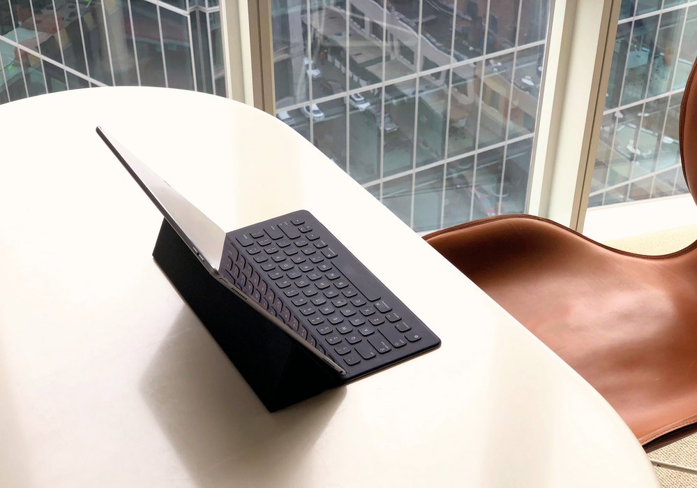 The iPad Pro features a large and stunning ProMotion display, more mature multitasking functionality, performance to put it in the same arena as larger laptops, a lag-free new input capability with the Pencil and a growing collection of iPad-optimized productivity apps. All while having an impressive battery life, making it a device that can effortlessly feel at home at a coffee shop just as much as on a plane, couch, Eames lounge chair, kitchen counter.. anywhere.