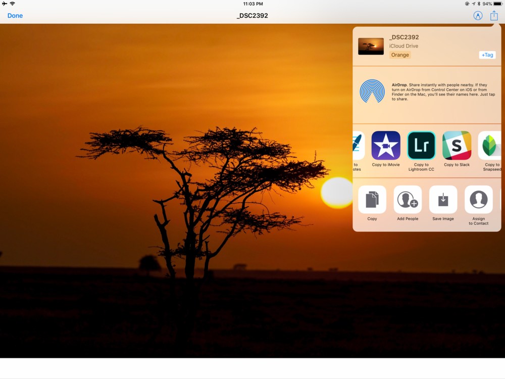 For fun I decided to open some of the shots in the Lightroom CC app. I expected that the photos would just be there, ready to edit as they were already on the device. Unfortunately, there’s yet another step—I had to import the photos to the Lightroom app. And this is not a simple "add" type of import that just keeps the references to the files. I think it actually copies the files over again. Great. So that took another eternity.