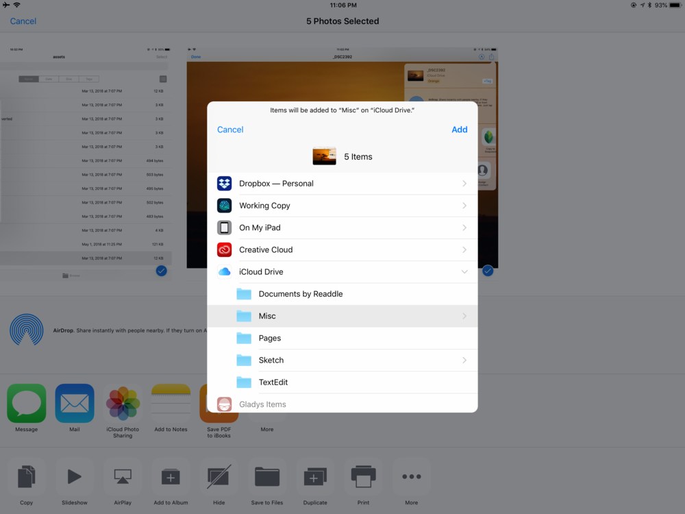 The limitations don’t end there. Files can’t access any connected external storage devices, even if you find a way to hook one up via a USB adapter. I had hopes of being able to import RAW photos to the iPad Pro, then move them to a much larger external SSD as I travel. That’s unfortunately not possible at this time. (Update! This is now possible with iPadOS 13 and an iPad with a USB-C port.) You also can’t do simple things like put a few files into a zip archive (Update: You can now do this in iPadOS 13 too). Some of these limitations with local files can be worked around with a third-party app like Documents by Readdle.