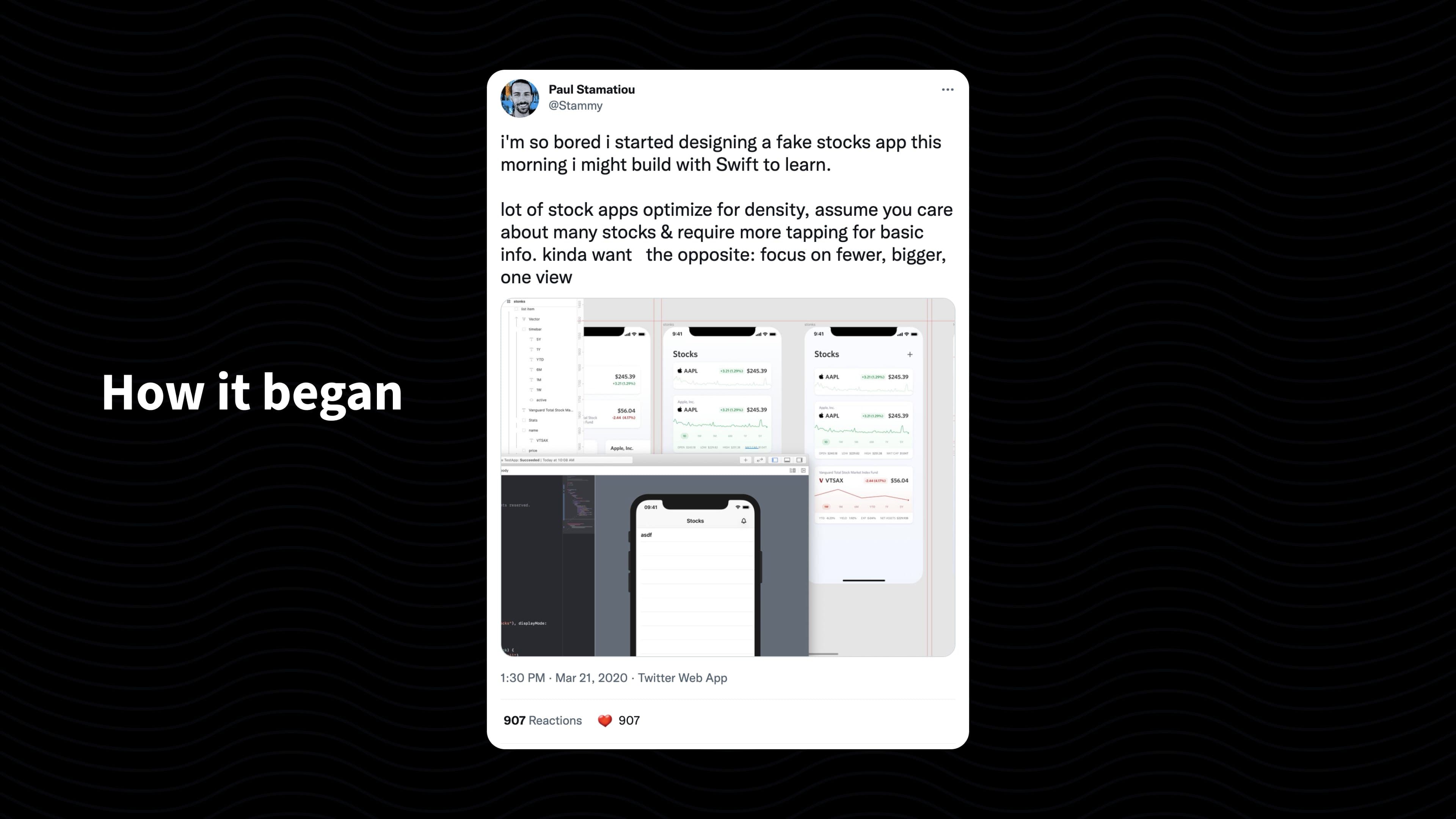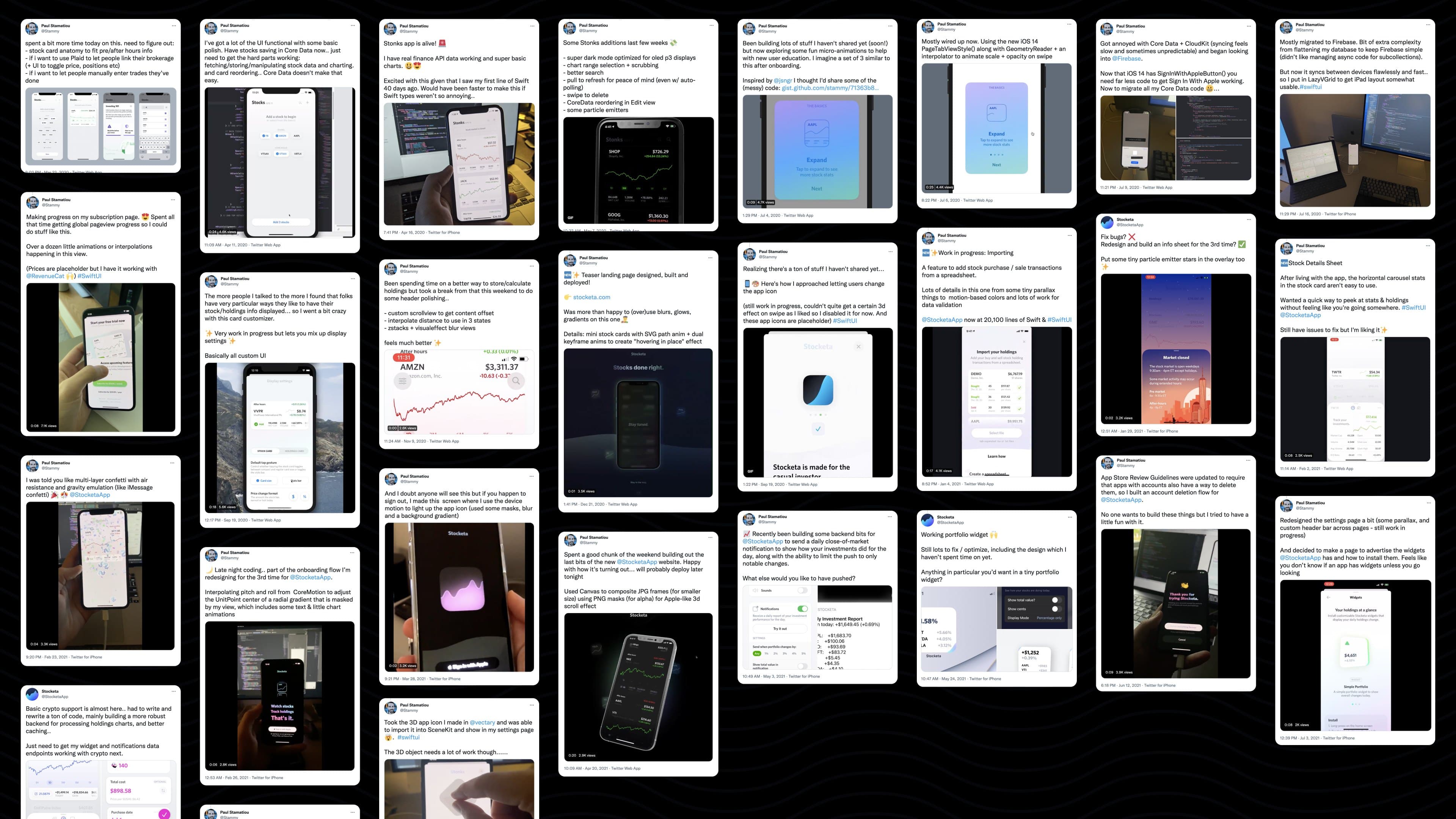 I kept designing, building.. and then redesigning and rebuilding. One of the side effects of learning Swift and SwiftUI as I was building this was that I was constantly redoing specific pages and parts of the app as I went. I continually found better ways to build things, and similarly I would continually refine designs. About a year or so into building Stocketa I wrote about my experience with SwiftUI. Much of that still rings true.